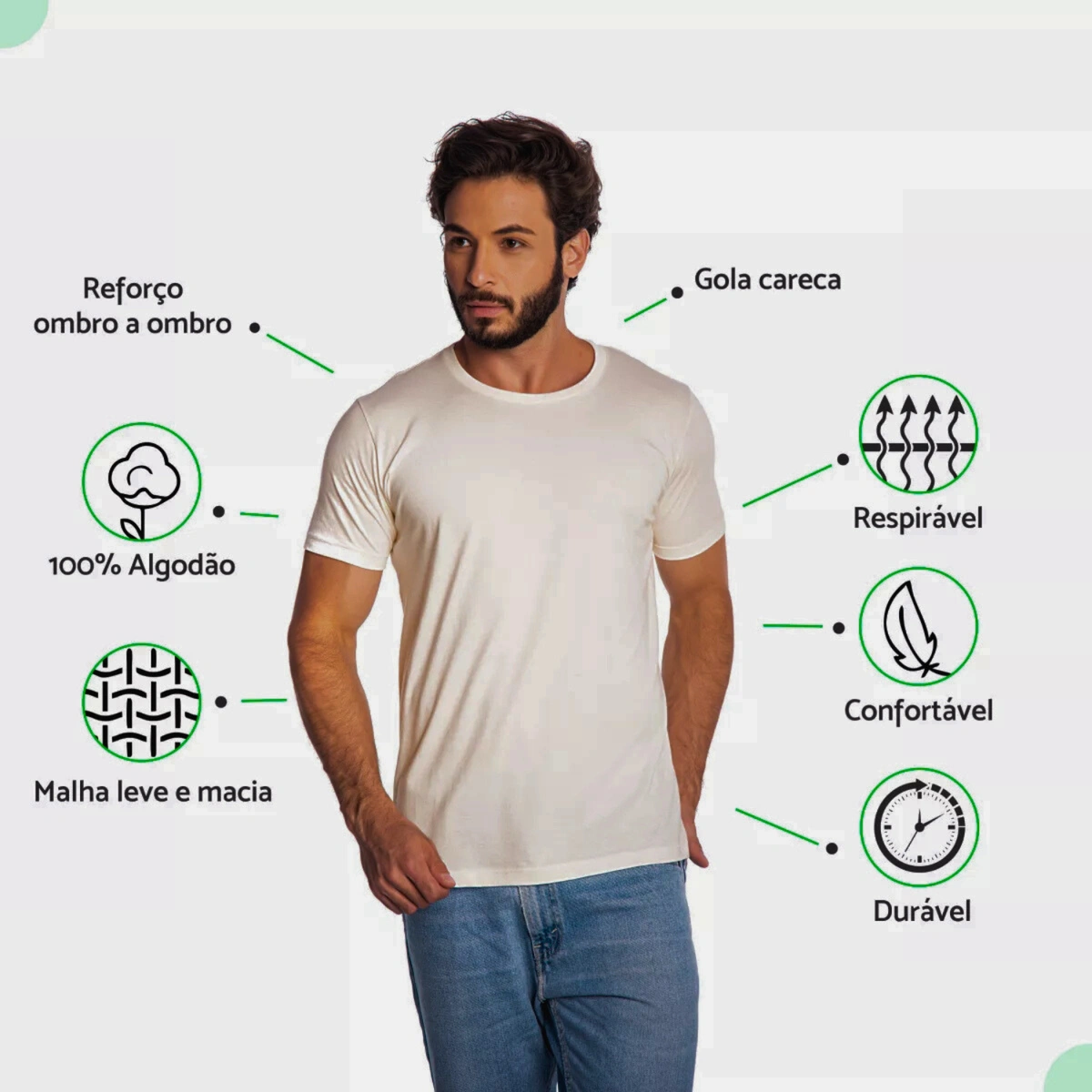 Material: 100% Algodão Premium com malha penteada fio 30.1