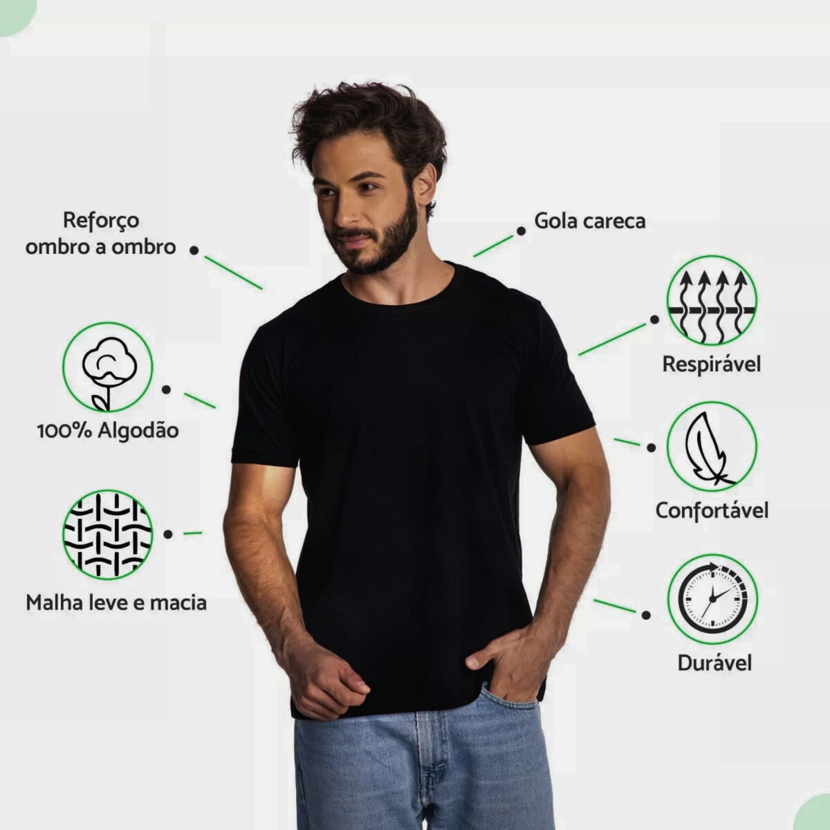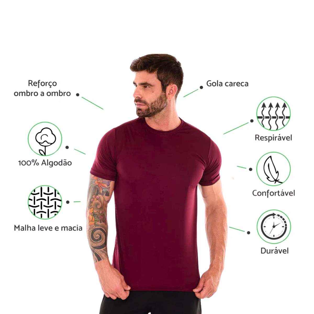 Qualidade Premium, Costuras reforçadas no colarinho e ombros.