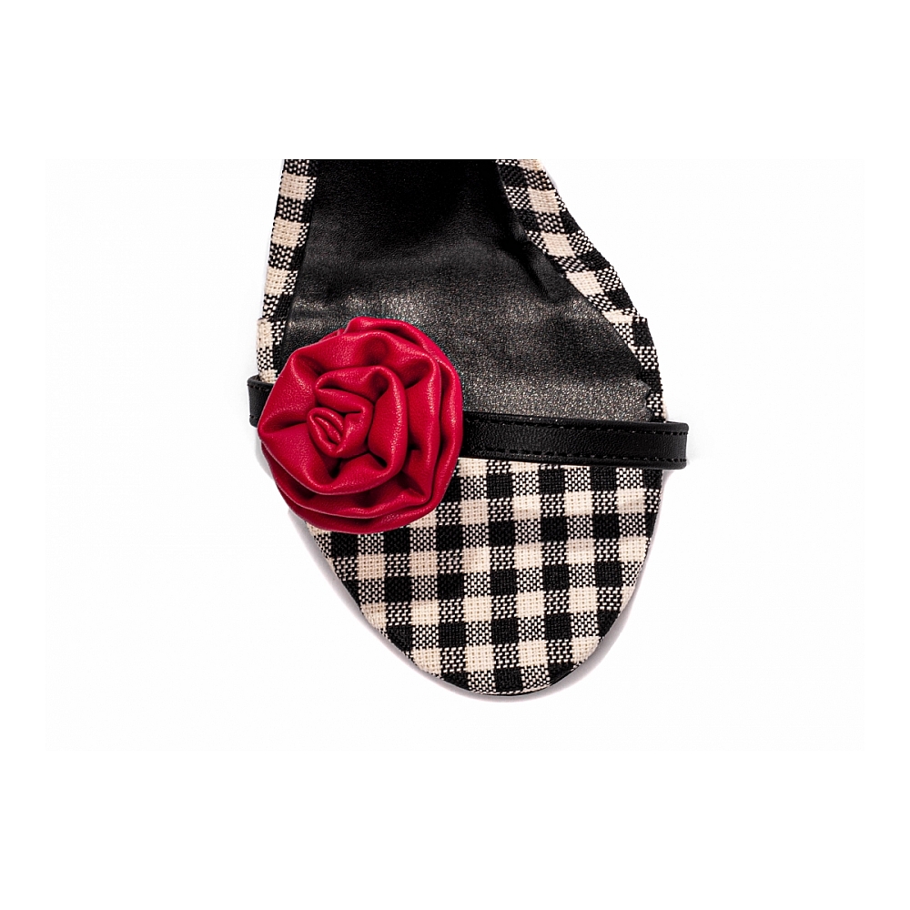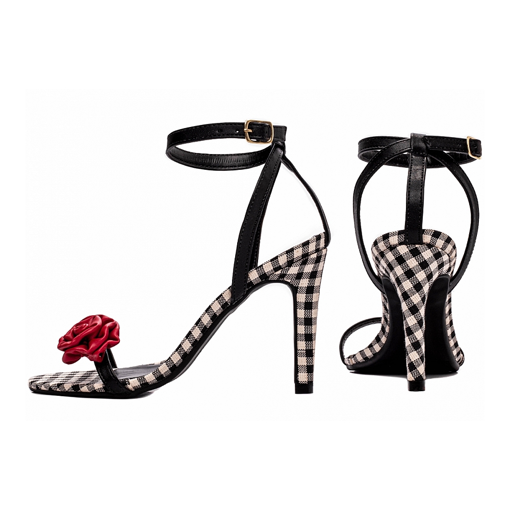 Combinando o clássico com o ousado, este calçado em napa preto com detalhes em tecido xadrez preto e branco, adornado com uma flor em napa vermelha e fivela dourada, é a escolha ideal para quem busca se destacar com elegância. Seja para ocasiões formais ou para momentos que exigem um toque extra de estilo, este modelo é versátil, moderno e incrivelmente confortável. Perfeito para transformar qualquer look em uma produção única e sofisticada, ele é uma peça essencial para quem valoriza o equilíbrio entre luxo e originalidade.
