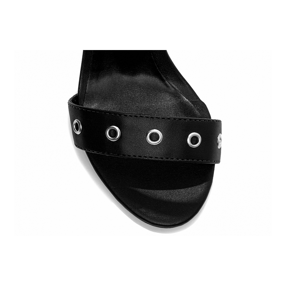 Os detalhes refinados tornam este calçado ainda mais especial. A fivela de ajuste em prata adiciona um toque de sofisticação e contraste ao design, permitindo um ajuste preciso e confortável. Os ilhós em prata complementam o visual com um leve brilho, criando um equilíbrio harmonioso entre o preto elegante e os detalhes metálicos, o que eleva ainda mais o estilo do calçado.