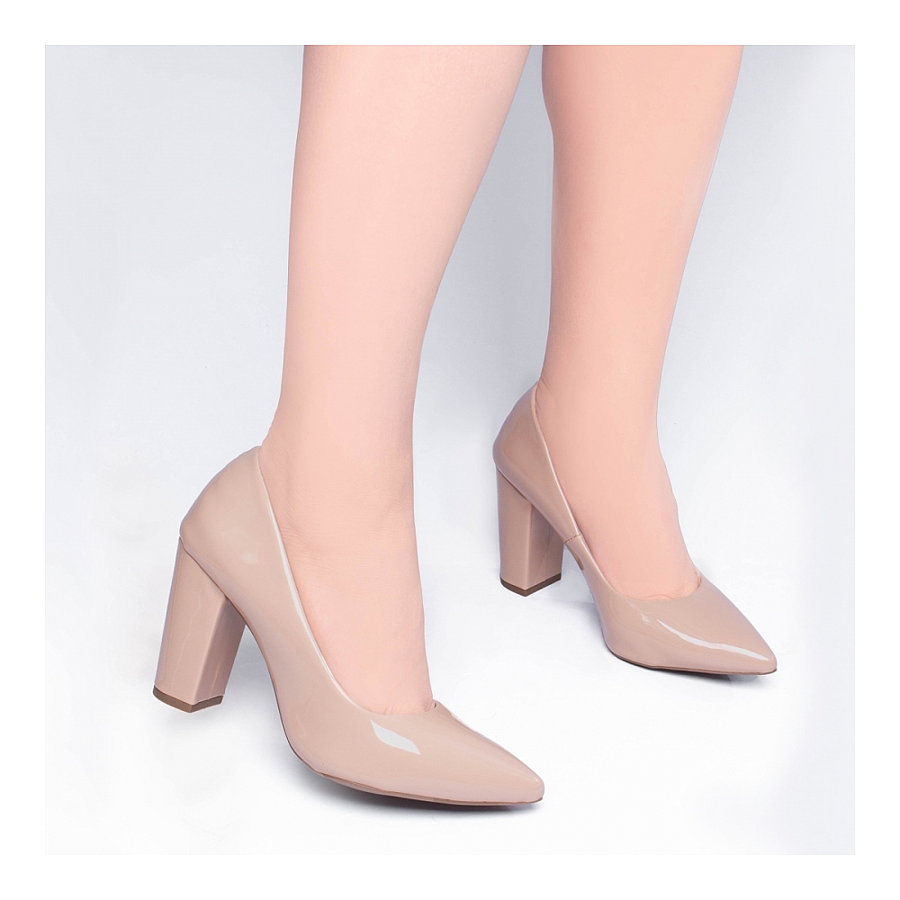 Salto: 8,5 cm de Altura encapado em Verniz Rose;
